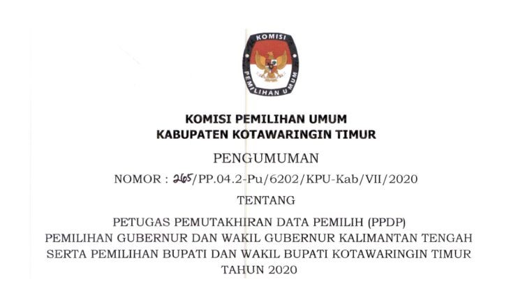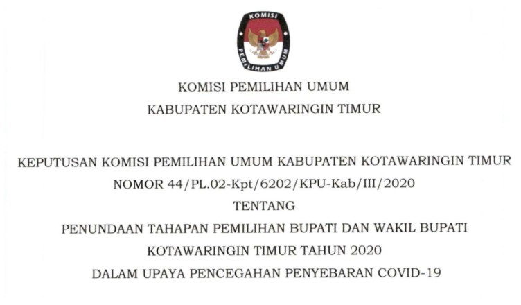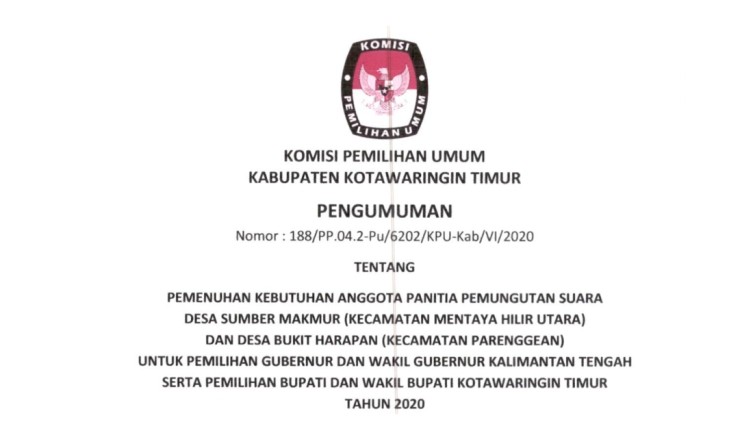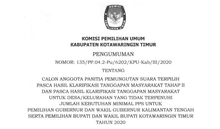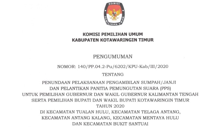 Pengumuman Penundaan Pelaksanaan Pengambilan Sumpah/Janji dan Pelantikan PPS Tahun 2020 di Kecamatan Tualan Hulu, Telaga Antang, Antang Kalang, Mentaya Hulu dan Kecamatan Bukit Santuai
