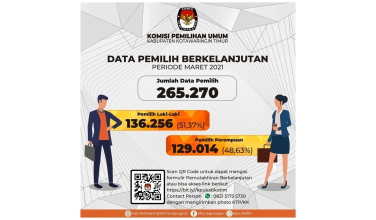 KPU Kabupaten Kotawaringin Timur melaksanakan Pemutakhiran Data Pemilih Berkelanjutan Tahun 2021 dengan membuka layanan pelaporan dan tanggapan masyarakat, baik secara online maupun secara offline. Tujuan dilaksanakannya Pemutakhiran Data Pemilih Berkelanjutan yaitu untuk memperbaharui data pemilih guna mempermudah proses pemutakhiran data dan penyusunan Daftar Pemilih pada Pemilu/Pemilihan berikutnya. Akses Link berikut untuk mengisi data diri anda Klik Disini
